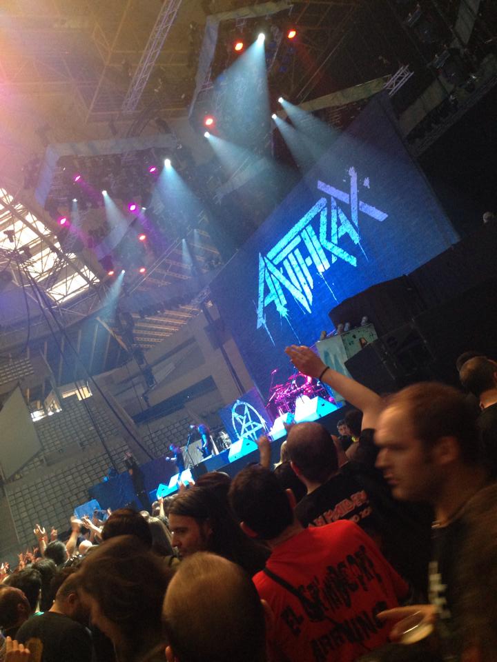7:55 pm – Anthrax are closing their set with Antisocial. The venue seems to be rigged for an audience capacity of about 3/4, so it seems Maiden have not come close to selling out in Bilbao…